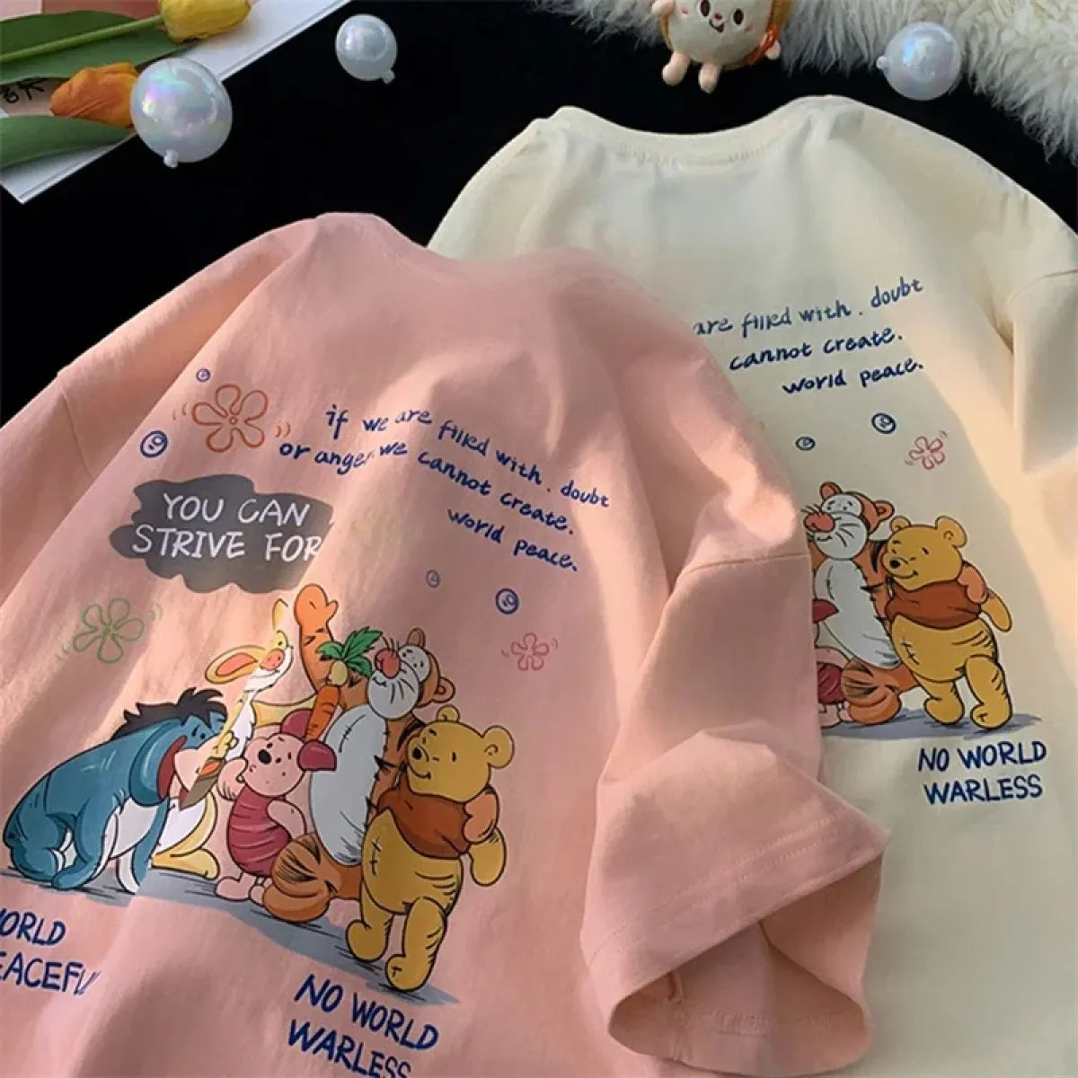 Whether you're spreading love and good vibes or just vibing with your favorite bear squad, this graphic tee adds instant joy to your wardrobe. Perfect for gifting to someone who adores cozy cartoons and kawaii aesthetics, or for treating yourself to a dose of daily cheer. Available now at Kawaii Stop—grab yours before it disappears into the Hundred Acre Wood!