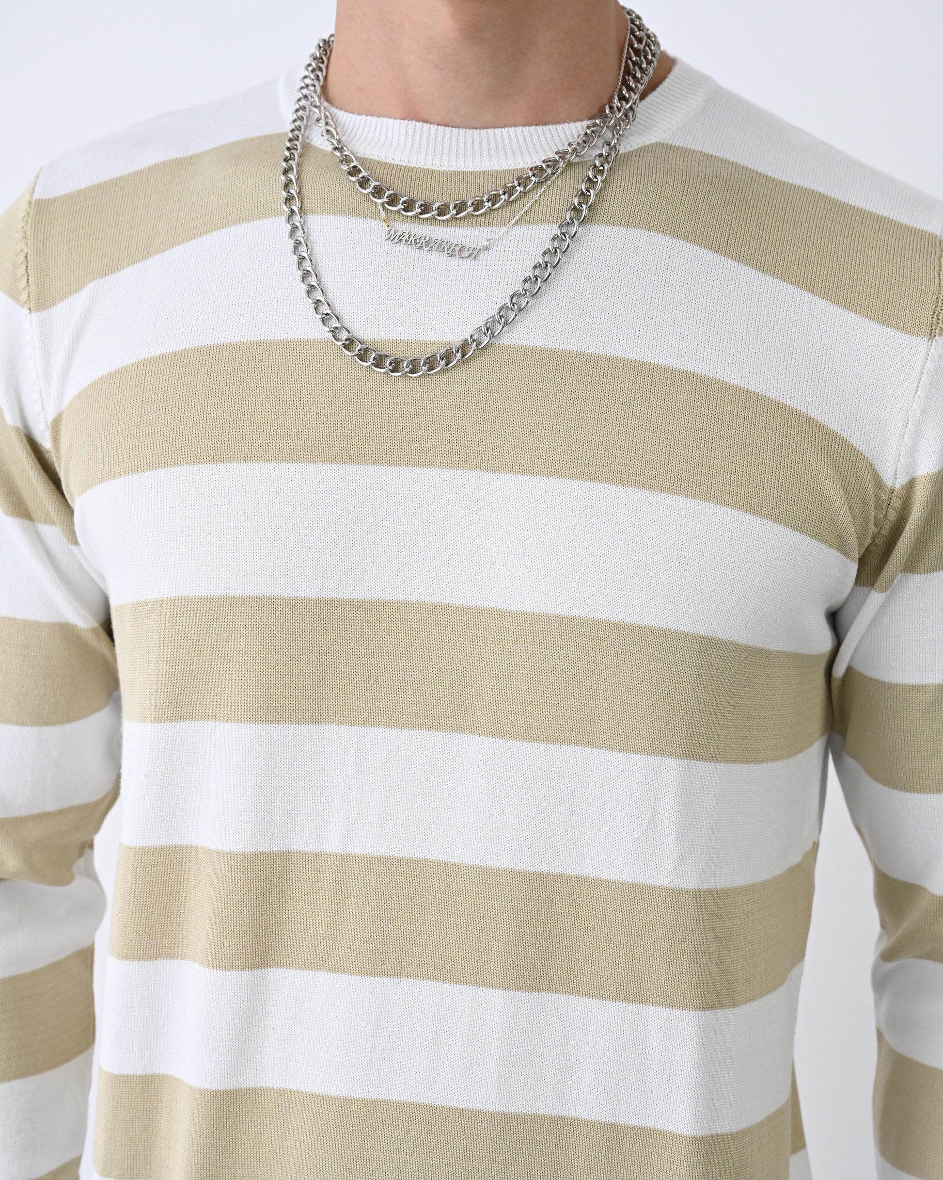 Casual Men's Knitwear with Dual-Tone Stripe Detail