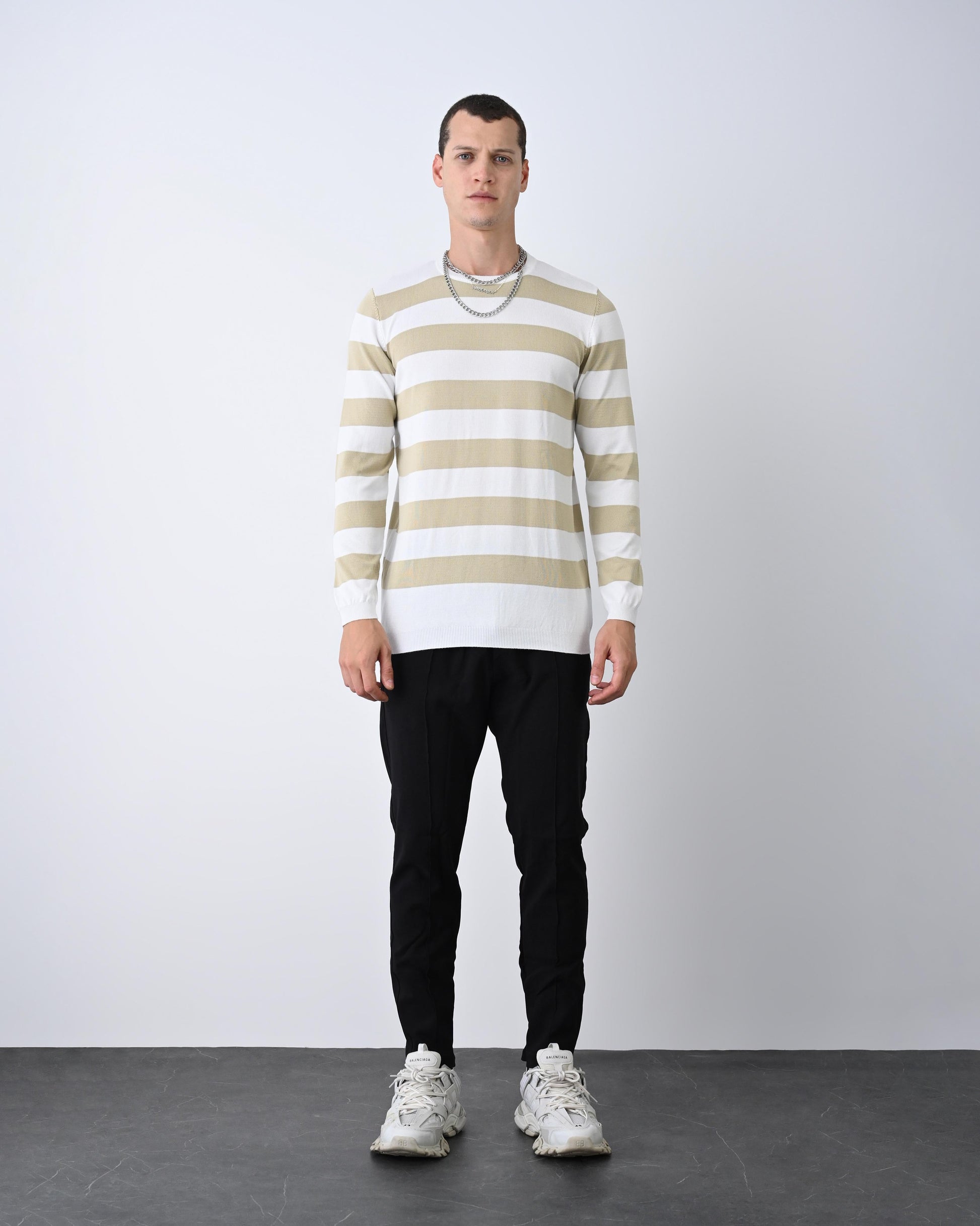 The Modern Striped Men’s Sweater is a perfect choice for a stylish and casual outfit. Its modern design and soft fabric make it suitable for daily wear.