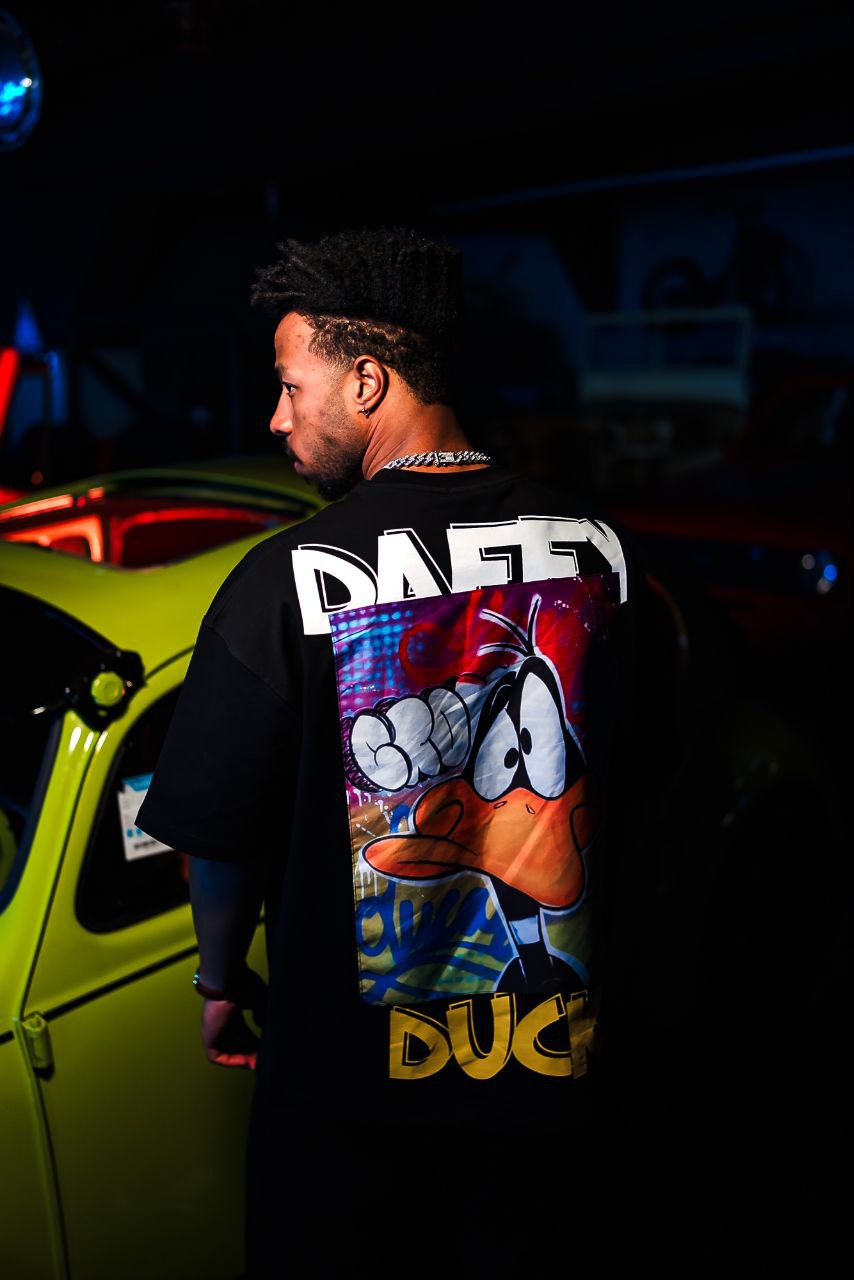 Introducing the stylish "Daffy Duck GROVA" t-shirt, featuring a bold print of the iconic cartoon character **Daffy Duck**! This t-shirt is the perfect way to express your love for classic cartoons, add a playful touch to your style, and stay effortlessly stylish. Combine Daffy Duck's fun energy with fashionable streetwear! Available in multiple colors to match your unique vibe.