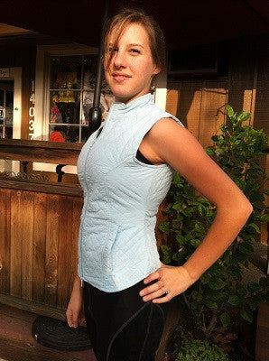 Feather light quilted micro fiber polyester shell is warm, durable, wind & water resistant. 2 front side pockets. Rear zip pocket. 2-way front zipper. Ultra tailored for superior and very flattering fit. Sky Blue or Midnight Black.