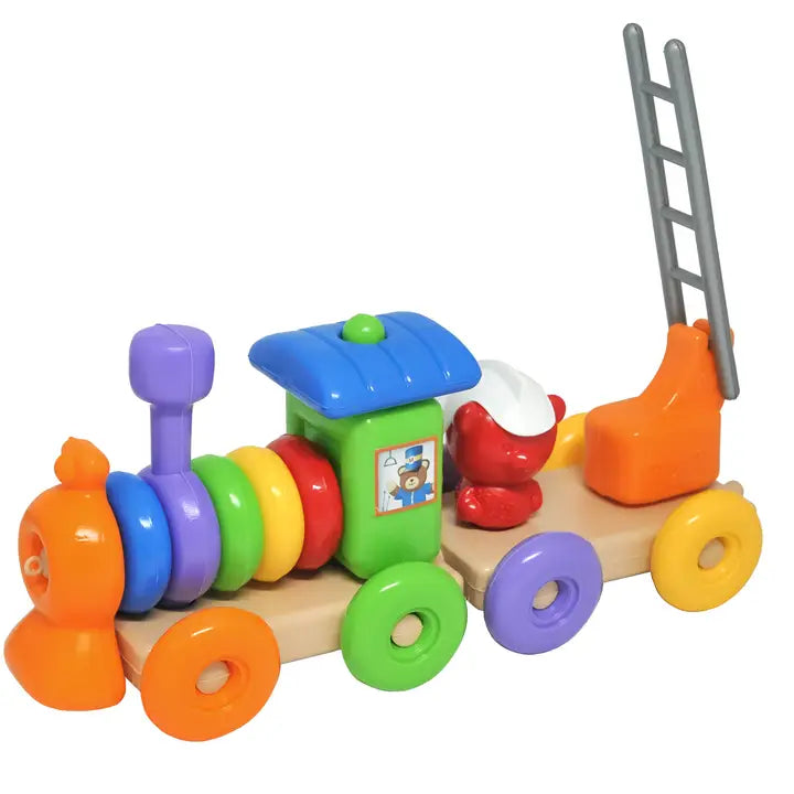 The educational toy "Funny Train" is intended for the early development of children. "FunnyTrain" is a functional toy to promote the development of fine motor skills of the hands, memory, attention, and intelligence. Usually, a child starts playing at the age of six months when he tries or already knows how to sit, by stringing the rings on the rod, forming the basis of the train, the child develops coordination of movements, gets acquainted with colors, learns to compare objects with each other, looking for similarities and differences. The game stimulates the development of memory, language, and thinking.