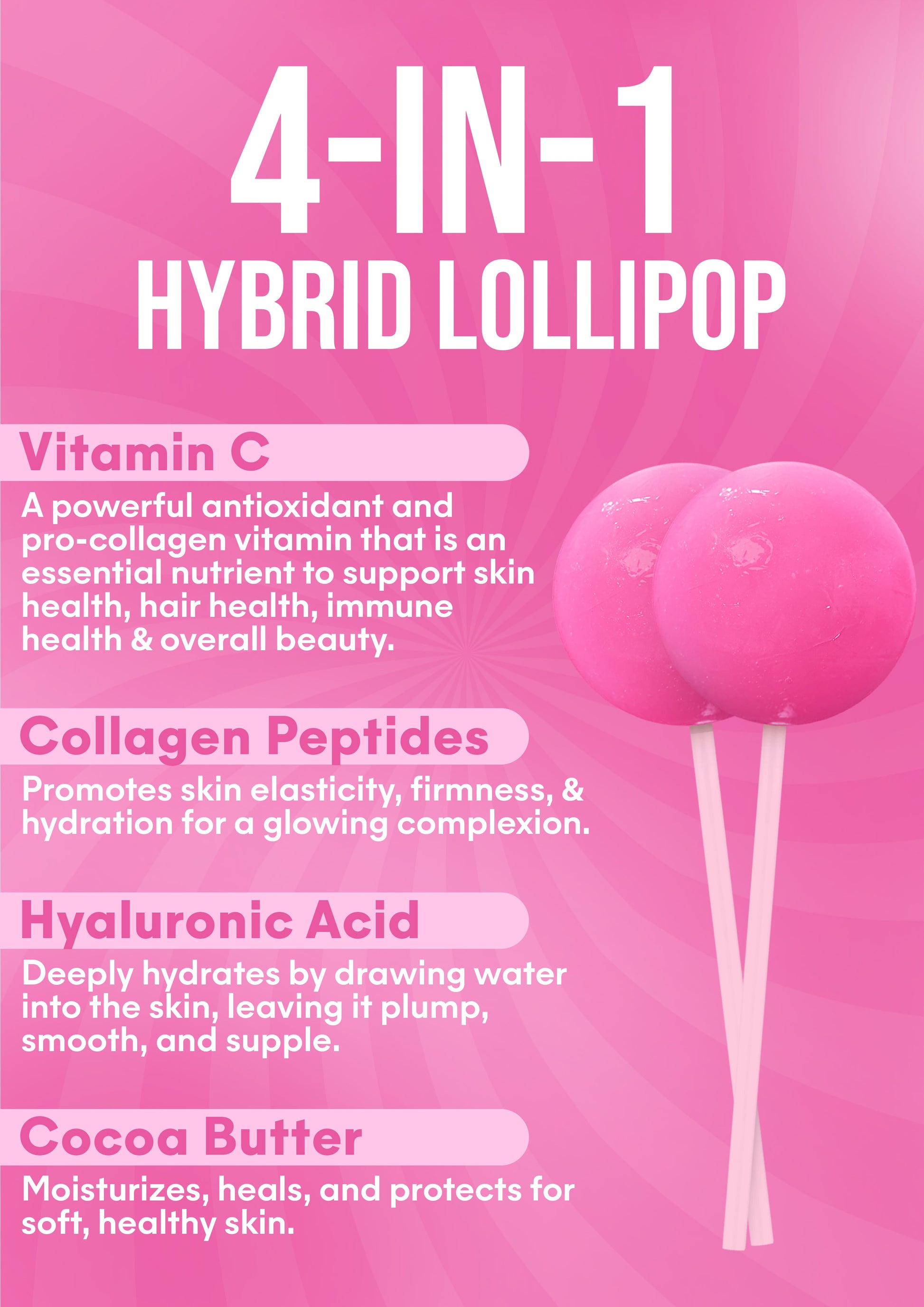 Meet It Girl Beauty Lollipops, the world’s first edible skincare treat. These functional lollipops are infused with collagen, hyaluronic acid, cocoa butter, and Vitamin C to nourish your skin, hair, and nails from within while satisfying your sweet tooth.