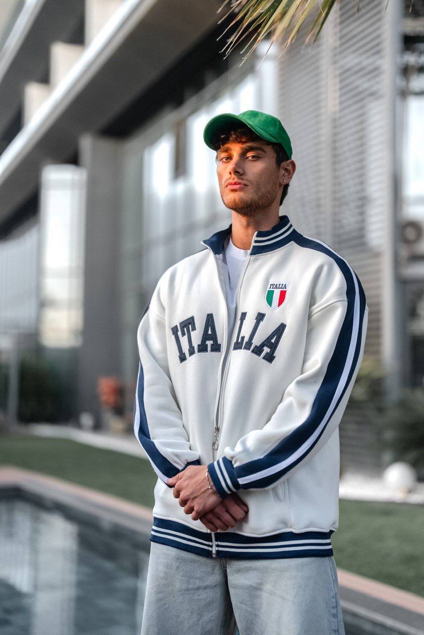 Experience the perfect blend of warmth and sophisticated style with the Italia Logo Oversized 3-Thread Fleece-Lined Compact Cardigan from Withinblack.com. Designed with a cozy fleece-lined interior and a durable 3-thread fabric construction, this cardigan provides superior comfort and insulation, making it your ultimate companion for chilly days and effortlessly stylish layering.