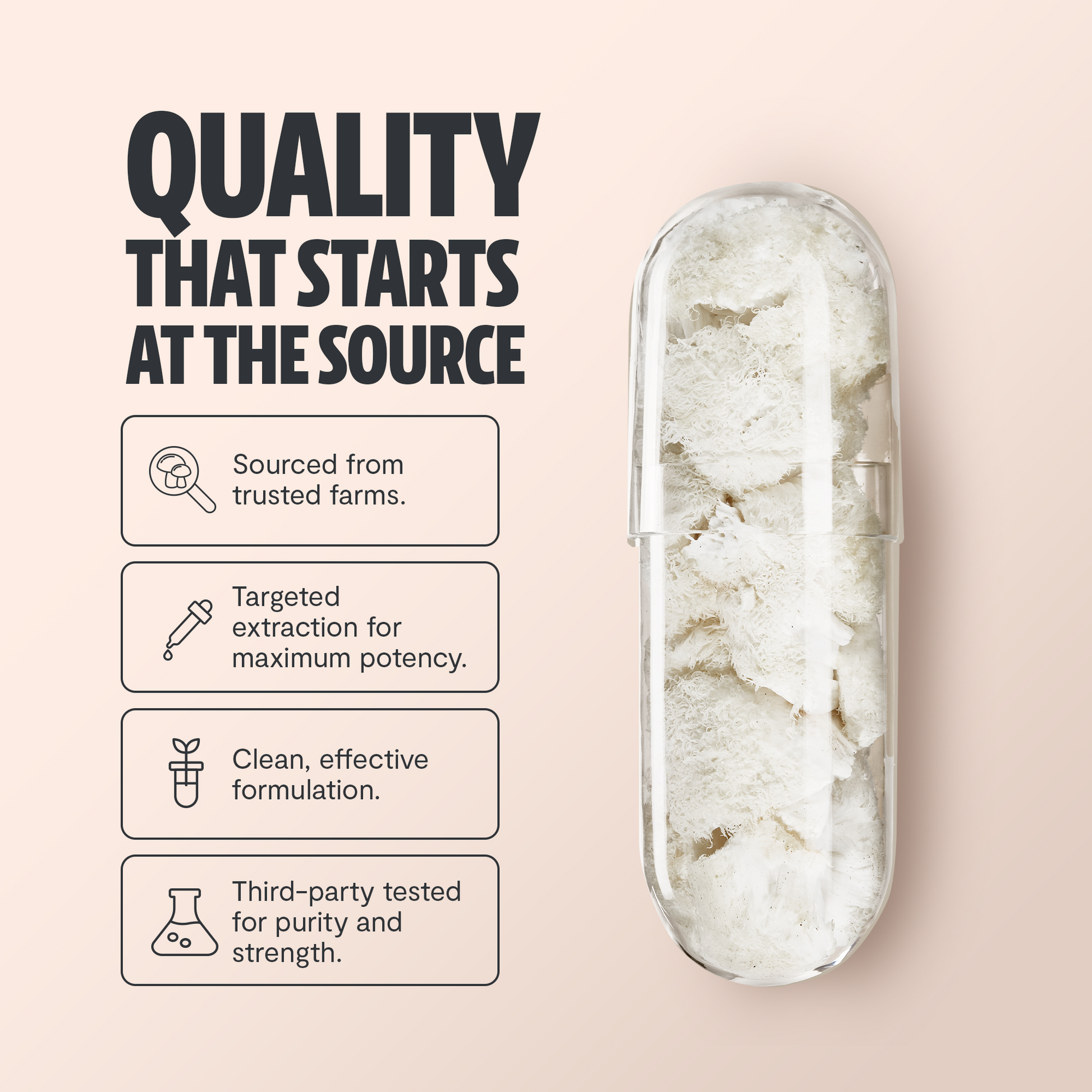 Premium Lion's Mane mushroom supplement for mental clarity and cognitive function. Triple-extracted for maximum potency, delivering 14,000mg raw mushroom power in convenient capsules.
