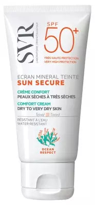 SVR Sun Secure Écran Minéral Teinté SPF50+ Dry to Very Dry Skins 60g is a very high 100% mineral face protection, suitable for dry to very dry intolerant skin.