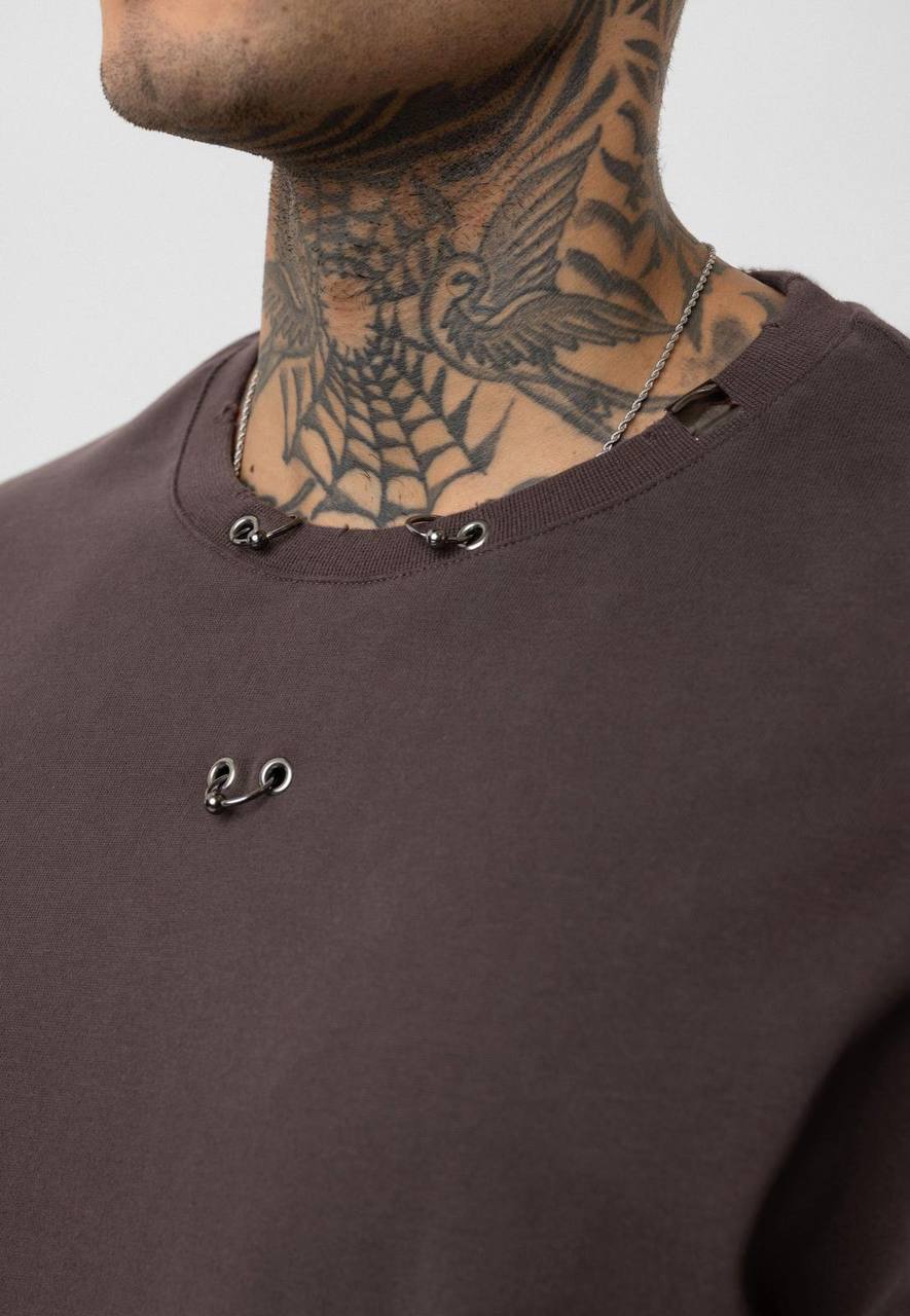 Vintage Wash Oversized T-Shirt with Metal Ring Collar: Edgy Streetwear.